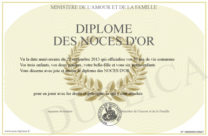 Envoyez par email votre Diplome des NOCES D'OR personalisé