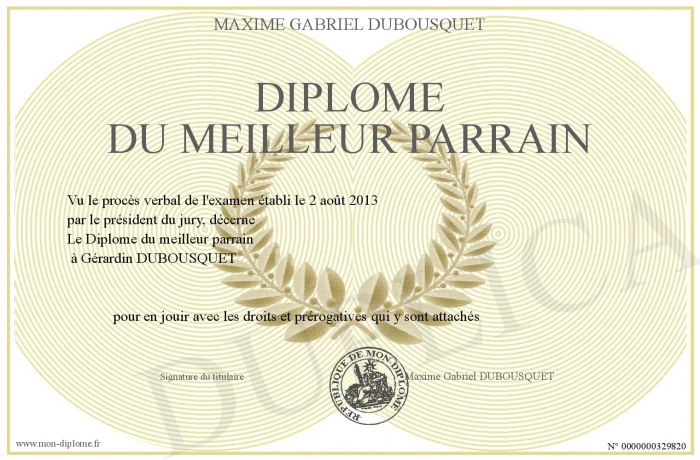 Envoyez par email votre Diplôme du meilleur parrain personalisé