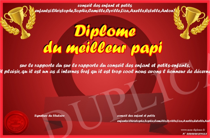Envoyez par email votre Diplôme du meilleur papi personalisé