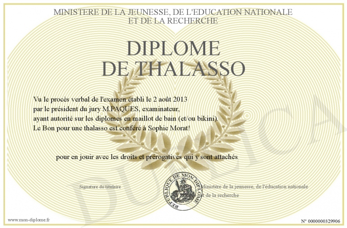 Envoyez par email votre Diplôme de Thalasso personalisé