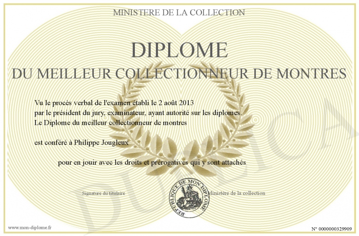 Envoyez par email votre Diplôme du meilleur collectionneur de montres personalisé