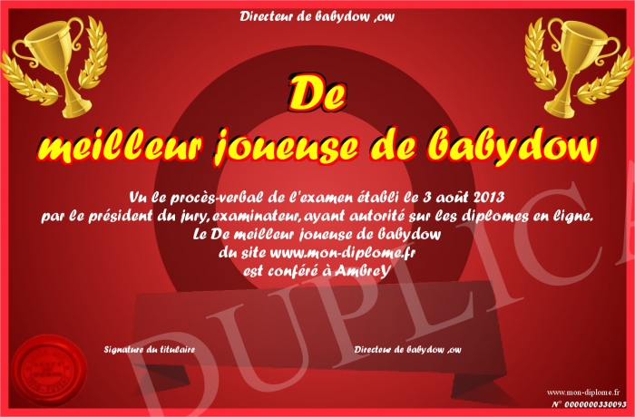 Envoyez par email votre De meilleur joueuse de babydow personalisé