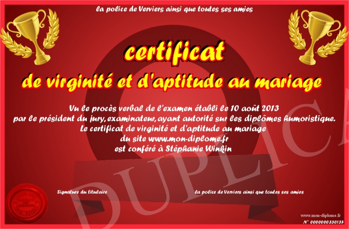 Envoyez par email votre certificat de virginité et d'aptitude au mariage personalisé