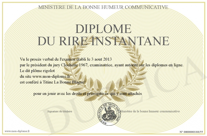 Envoyez par email votre Diplôme du rire instantané personalisé
