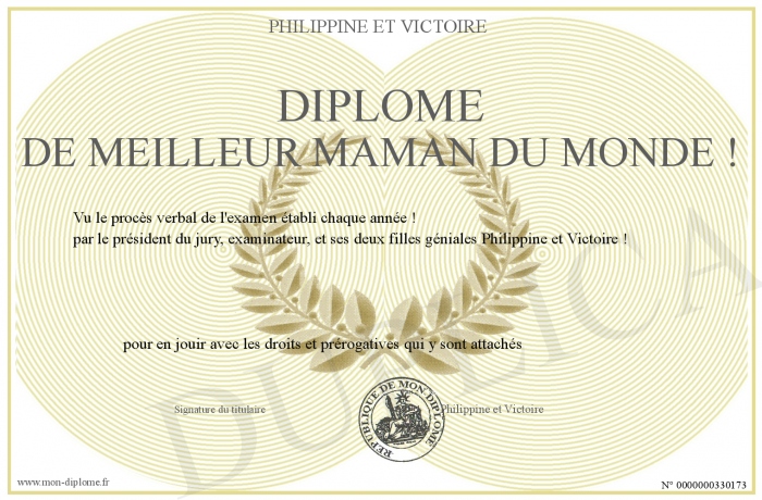 Envoyez par email votre Diplôme de meilleur maman du monde ! personalisé