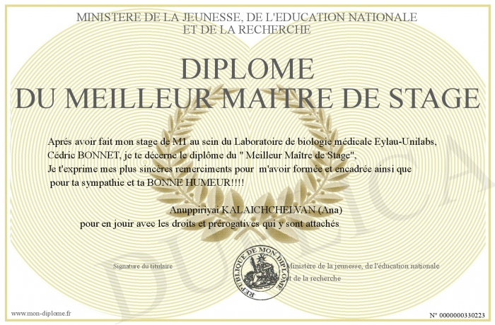 Envoyez par email votre DIPLOME DU MEILLEUR MAITRE DE STAGE personalisé