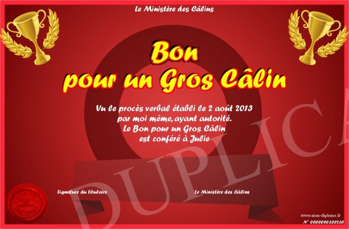 Envoyez par email votre Bon pour un Gros Câlin personalisé