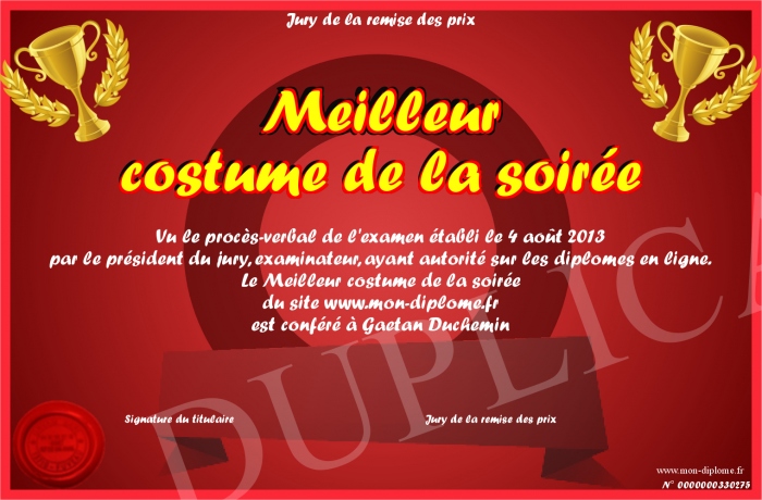 Envoyez par email votre Meilleur costume de la soirée personalisé