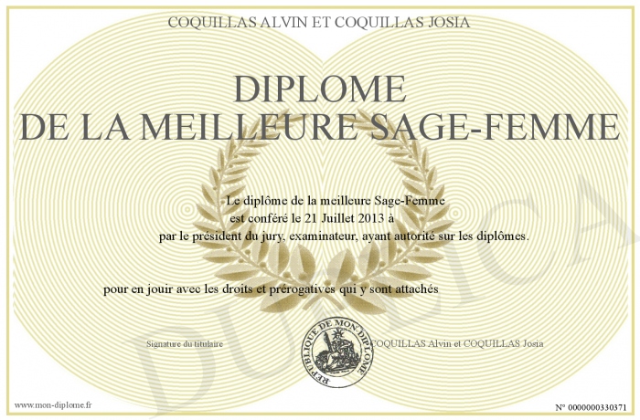 Envoyez par email votre Diplôme de la Meilleure Sage-Femme personalisé
