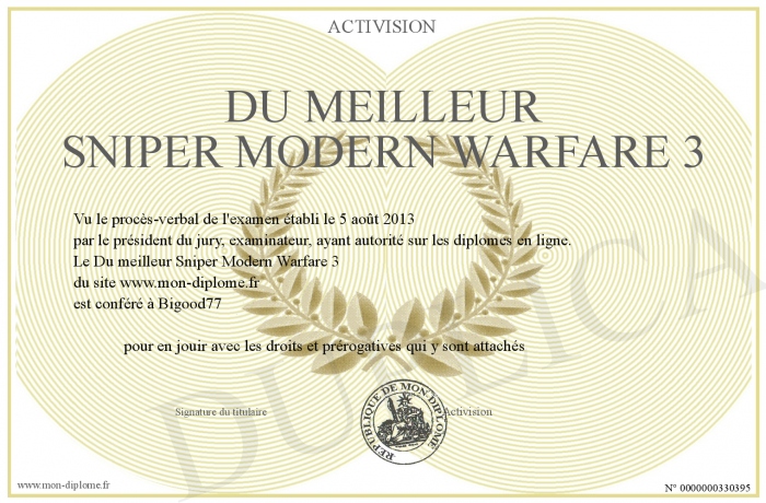 Envoyez par email votre Du meilleur Sniper Modern Warfare 3 personalisé