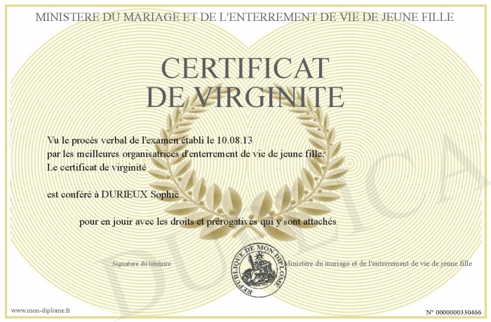 Envoyez par email votre certificat de virginité personalisé