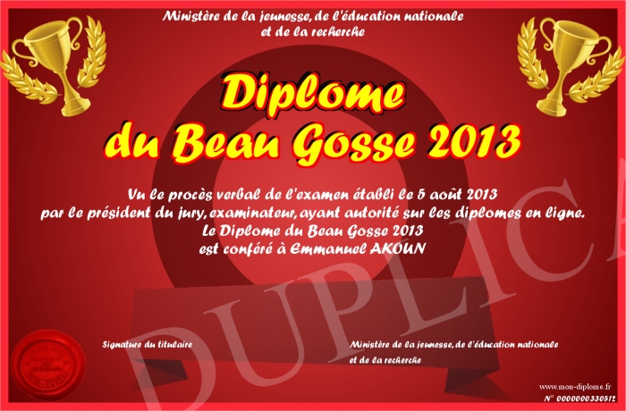 Envoyez par email votre Diplôme du Beau Gosse 2013 personalisé
