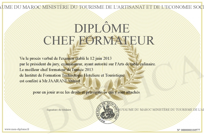 Envoyez par email votre DIPLÔME CHEF FORMATEUR personalisé