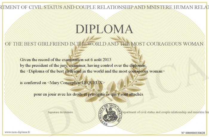 Envoyez par email votre Diploma of the best girlfriend in the world and the most courageous woman personalisé