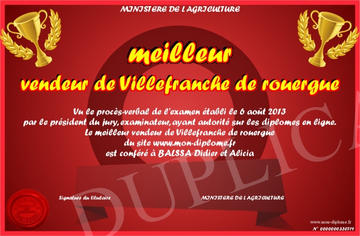 Envoyez par email votre meilleur vendeur de Villefranche de rouergue personalisé