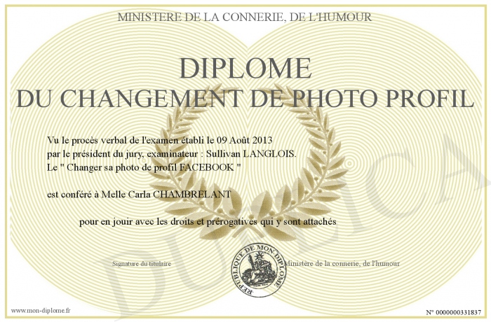 Envoyez par email votre Diplôme du changement de photo profil personalisé