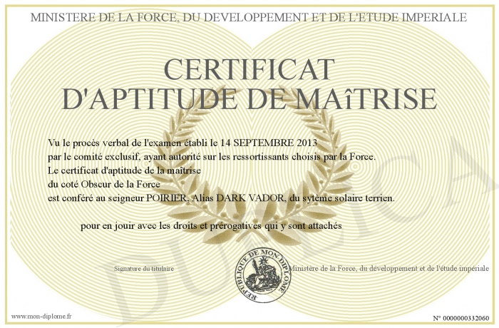 Envoyez par email votre Certificat d'aptitude de maîtrise personalisé