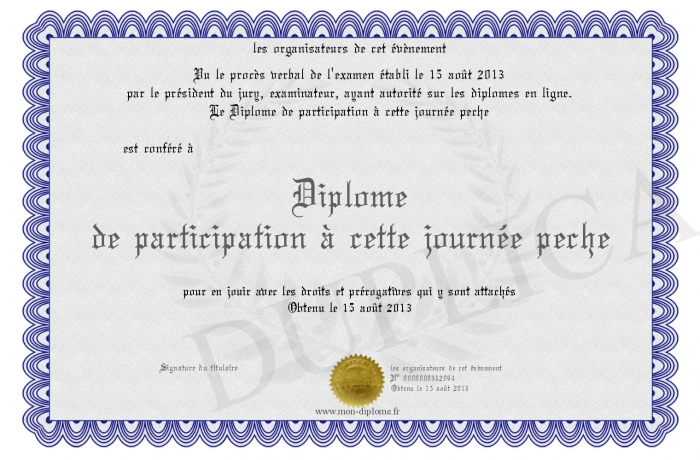 Envoyez par email votre Diplôme de participation à cette journée peche personalisé