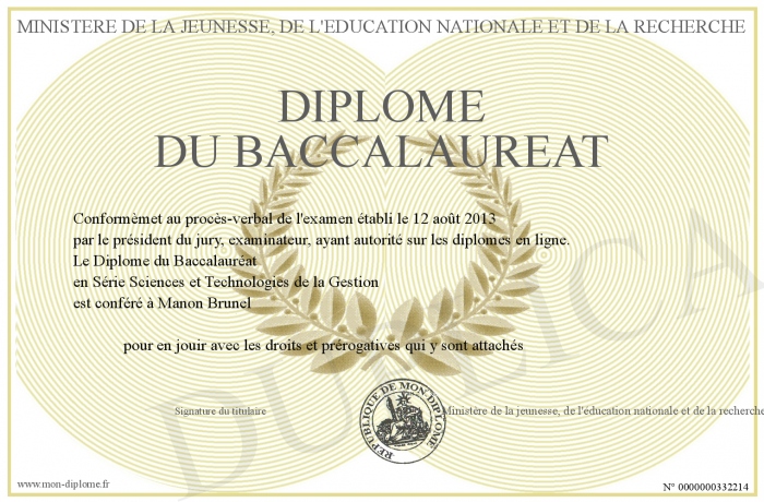 Envoyez par email votre Diplôme du Baccalauréat personalisé