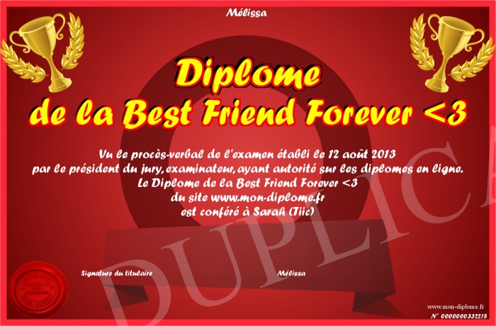 Envoyez par email votre Diplome de la Best Friend Forever -3 personalisé