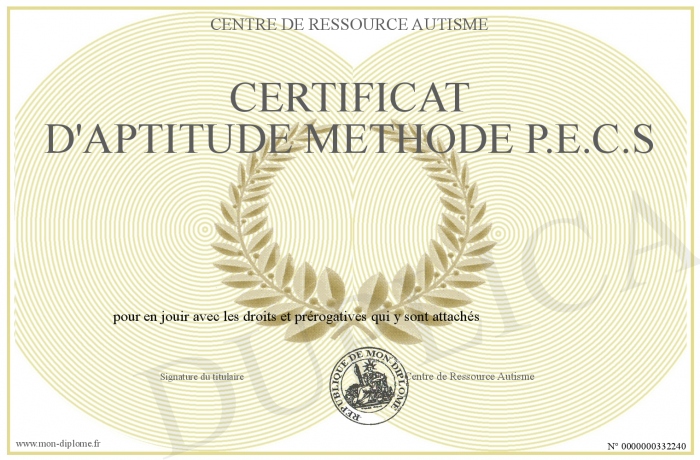 Envoyez par email votre Certificat D'aptitude Méthode P.E.C.S personalisé