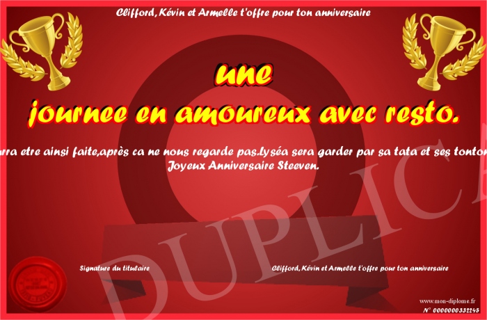 envoyé par le Clifford, Kévin et Armelle t'offre pour ton anniversaire !