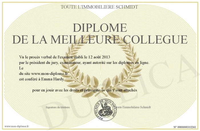 Envoyez par email votre Diplôme de la meilleure collègue personalisé