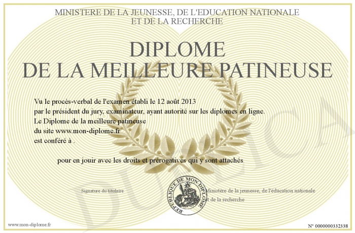 Envoyez par email votre Diplôme de la meilleure patineuse personalisé