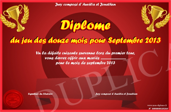 Envoyez par email votre Diplôme du jeu des douze mois pour Septembre 2013 personalisé