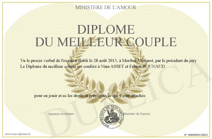 Envoyez par email votre Diplôme du meilleur couple personalisé