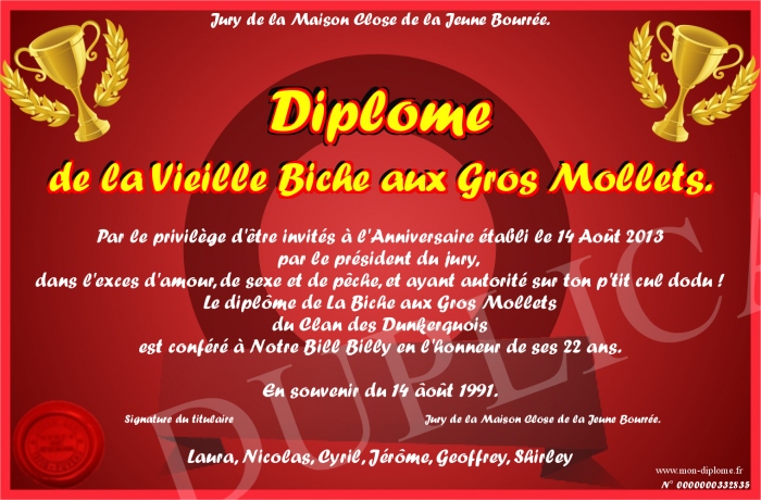 Envoyez par email votre Diplôme de la Vieille Biche aux Gros Mollets. personalisé