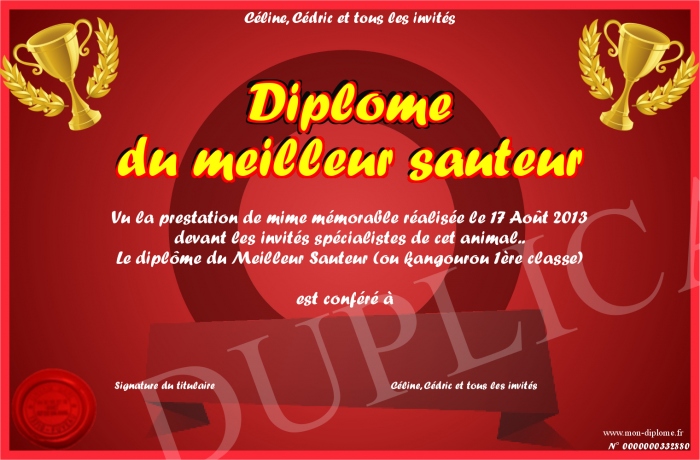 Envoyez par email votre Diplôme du meilleur sauteur personalisé