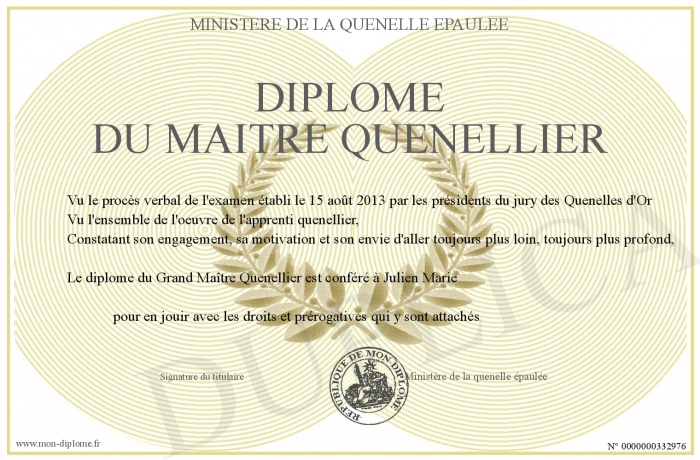 Envoyez par email votre Diplôme du maItre quenellier personalisé