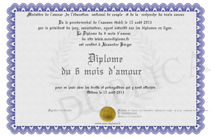 Envoyez par email votre Diplôme du 6 mois d'amour personalisé
