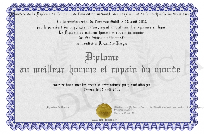envoyé par le Ministère de la Diplôme de l'amour , de l'éducation national des couples - et de la recherche du vrais amour !