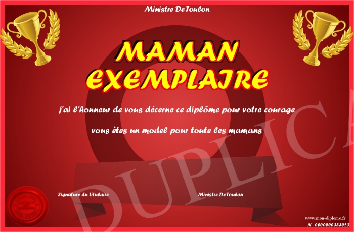 Envoyez par email votre MAMAN EXEMPLAIRE personalisé
