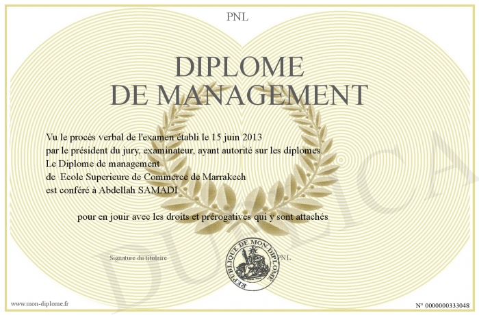 Envoyez par email votre Diplome de management personalisé