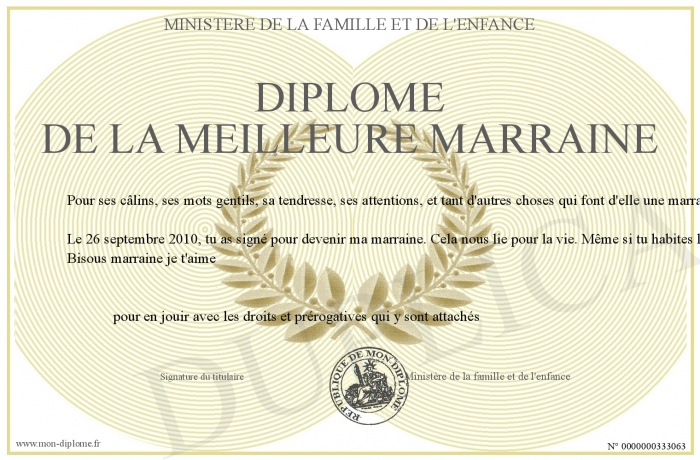 Envoyez par email votre Diplôme de la meilleure marraine personalisé