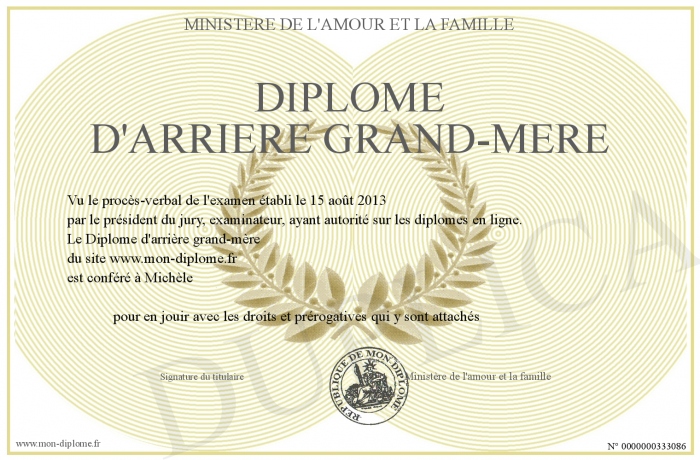 Envoyez par email votre Diplôme d'arrière grand-mère personalisé