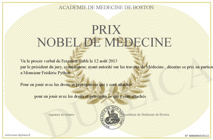 Envoyez par email votre Prix Nobel de Médecine personalisé