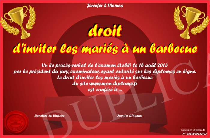 Envoyez par email votre droit d'inviter les mariés à un barbecue personalisé