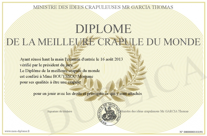 Envoyez par email votre Diplôme de la meilleure crapule du monde personalisé