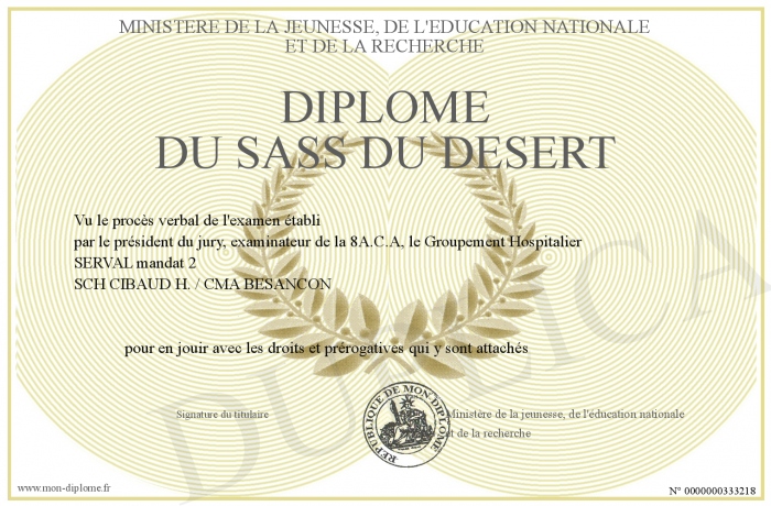 Envoyez par email votre Diplome du SASS du Désert personalisé