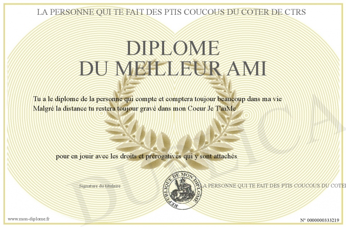 Envoyez par email votre DIPLOME DU MEILLEUR AMI personalisé