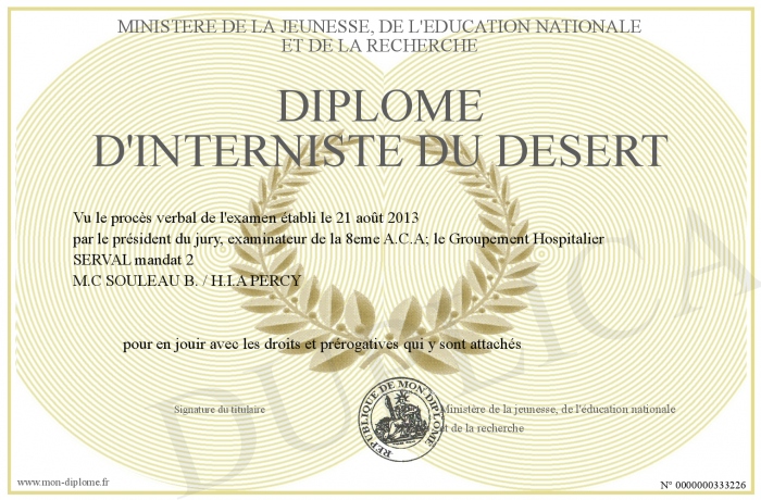 Envoyez par email votre Diplome d'Interniste du Désert personalisé