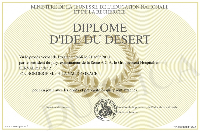 Envoyez par email votre Diplôme d'IDE du Désert personalisé