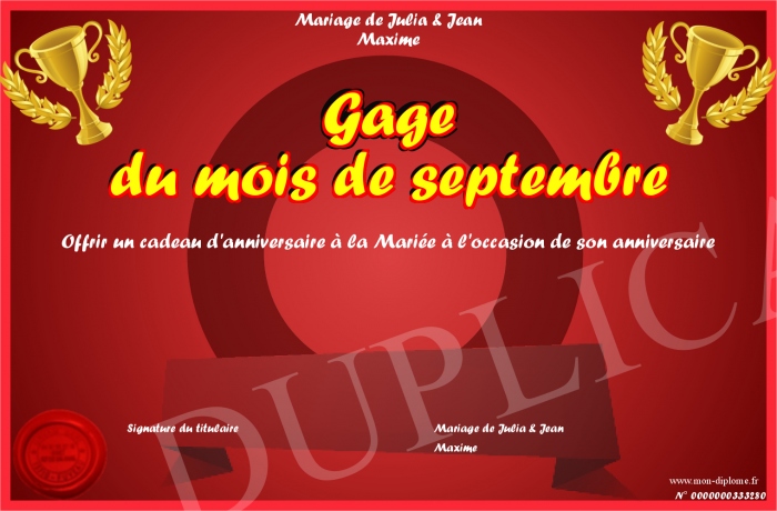 Envoyez par email votre Gage du mois de septembre personalisé