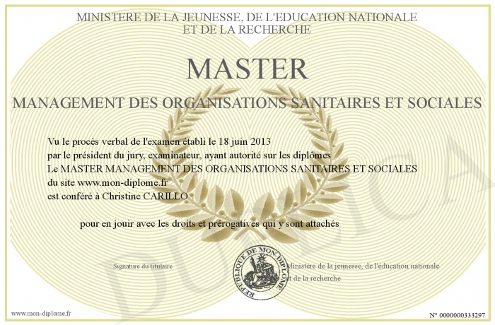 Envoyez par email votre MASTER MANAGEMENT DES ORGANISATIONS SANITAIRES ET SOCIALES personalisé
