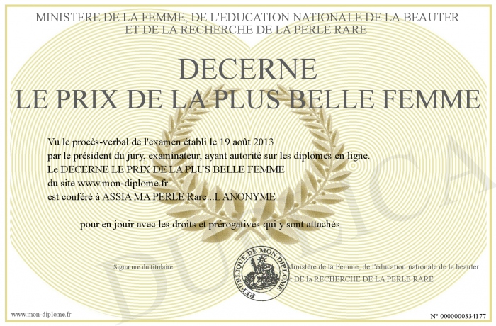 Envoyez par email votre DECERNE LE PRIX DE LA PLUS BELLE FEMME personalisé