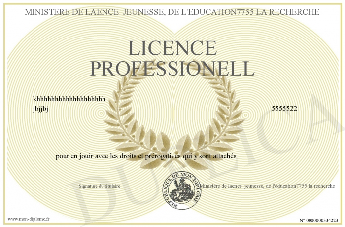 Envoyez par email votre licence Professionell personalisé